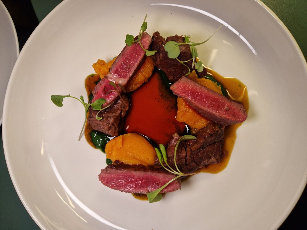 I had a selection of bread with a selection of mix dips from kale pesto to taramosalata, absolutely a great way to start fine dining. Followed by succulent beef cheek ribeye on sweet potato puree, cooked so beautifully. They also had black truffle pizza on the menu, which does take a little longer to cook, when it arrived the aroma of the truffle made you forget the wait. Finished off with decadent delicious triple chocolate cake and vegan ice cream.
